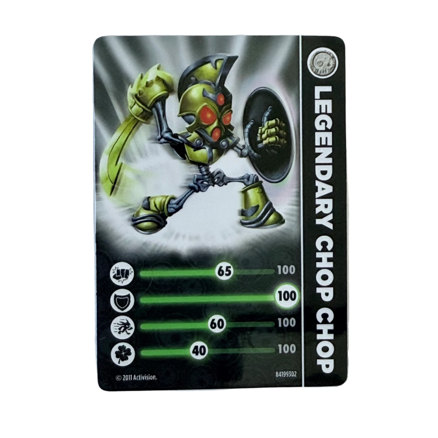 This is the stat card that was originally packaged with Legendary Chop Chop in Spyro's Adventure.